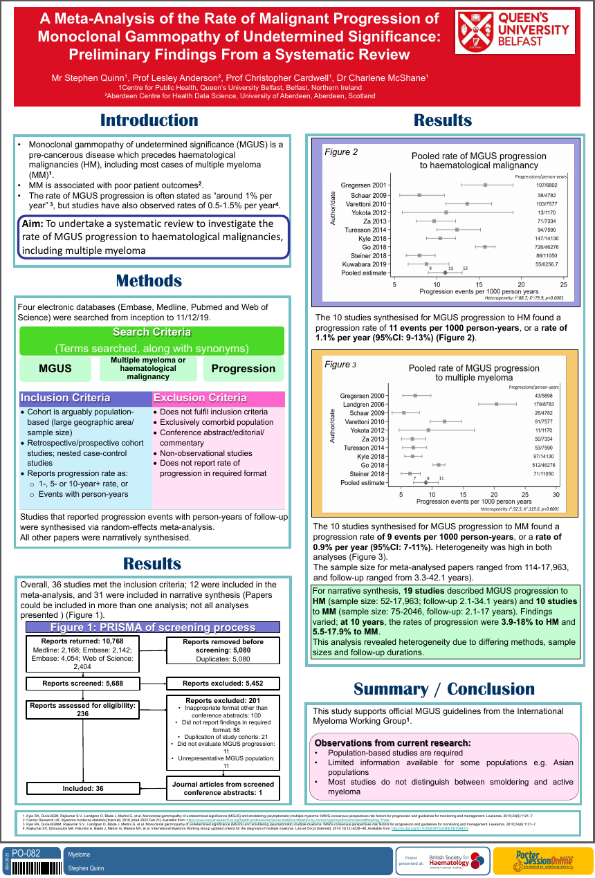 | A META-ANALYSIS OF THE RATE OF MALIGNANT.. | Stephen Quinn .. | Prof Lesley AndersonProf Chris.. | Myeloma.. | - - | |