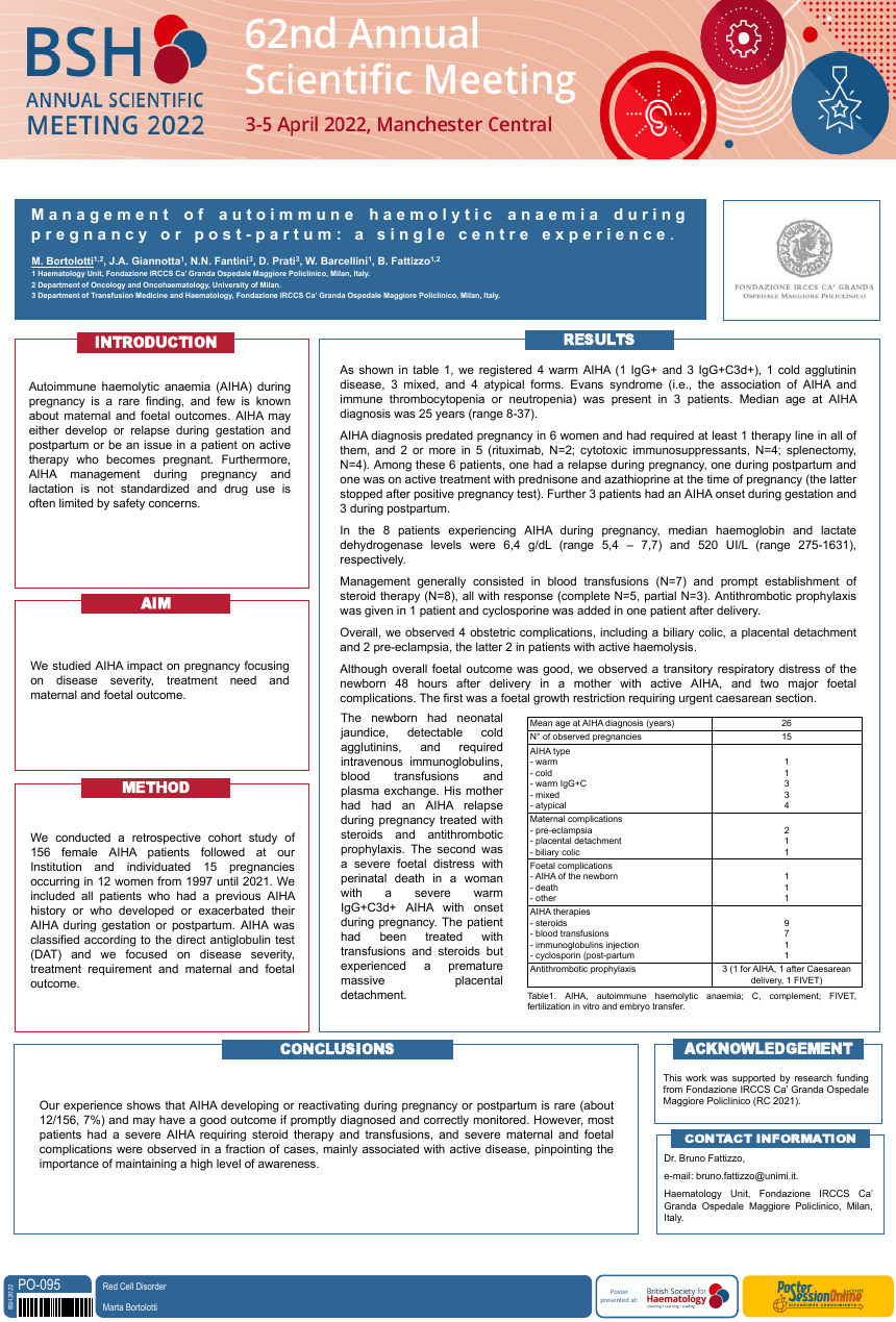 | Management of autoimmune haemolytic anae.. | Marta Bortolotti .. | .. | Red Cell Disorder.. | - - | |