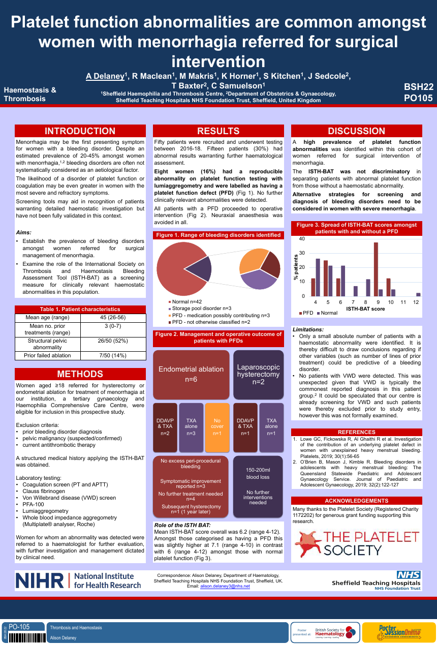 | Platelet function abnormalities are comm.. | Alison Delaney .. | Rhona Maclean, Michael Makris,.. | Thrombosis and Haemostasis.. | - - | |