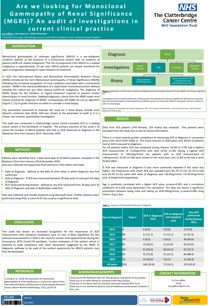 | Are we looking for Monoclonal Gammopathy.. | Lisa Jeffers .. | Alice Spencer, Gillian Brearto.. | Myeloma.. | - - | |