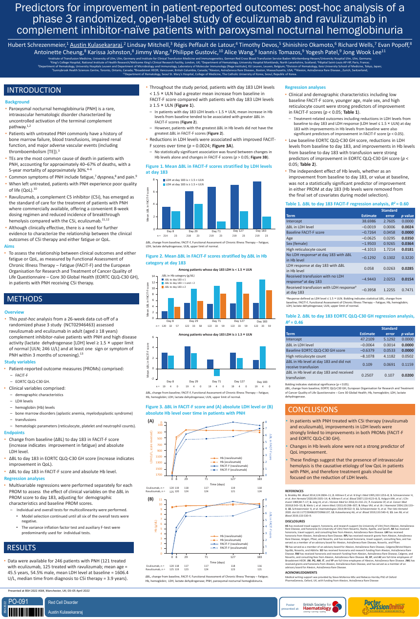 | Predictors for improvement in patient-re.. | Austin Kulasekararaj .. | Hubert Schrezenmeier, Austin K.. | Red Cell Disorder.. | - - | |