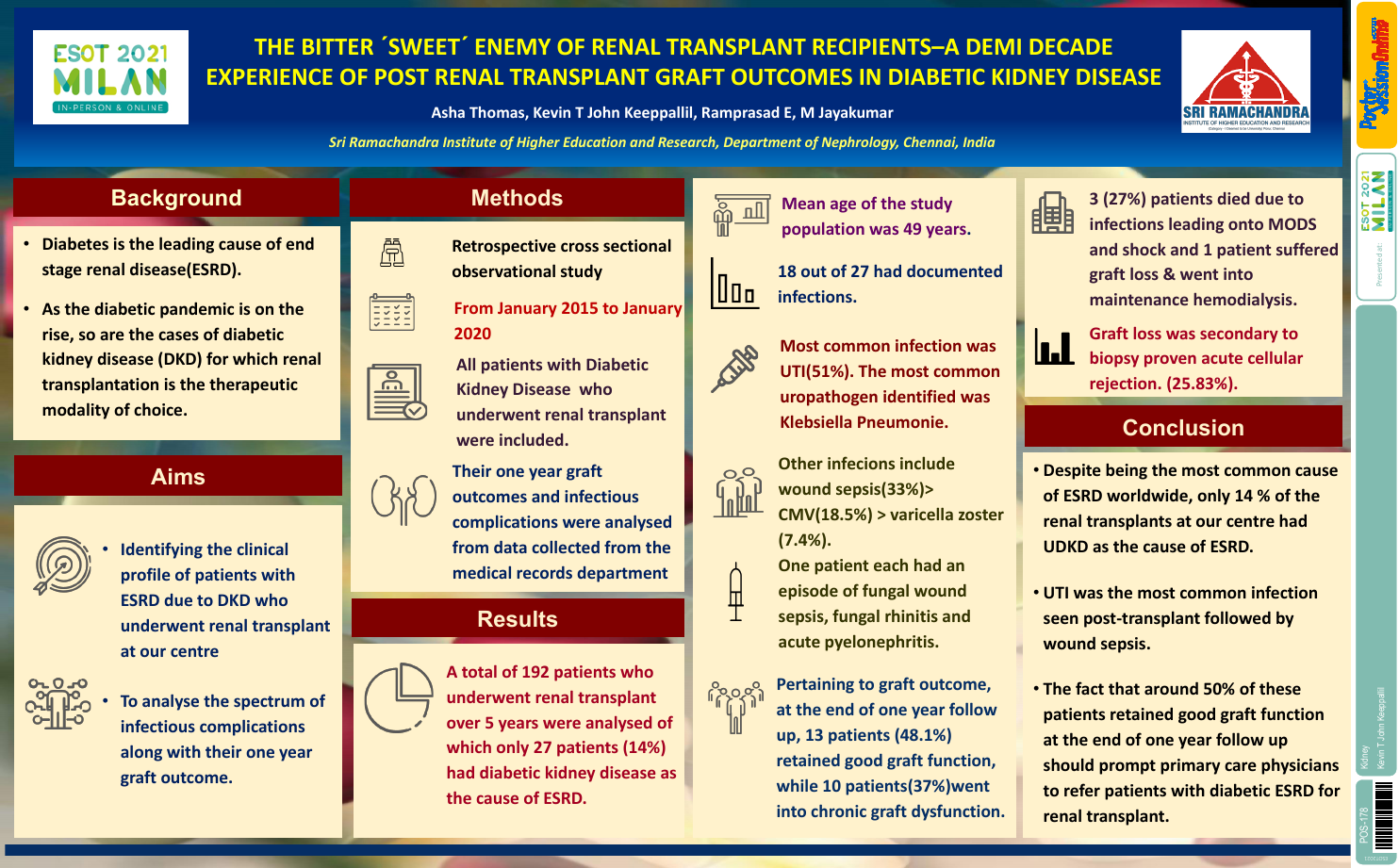 | THE BITTER SWEET ENEMY OF RENAL TRANSPLA.. | Kevin T John Keeppallil .. | Asha ThomasRamprasad EM Jayaku.. | Kidney.. | - - | |