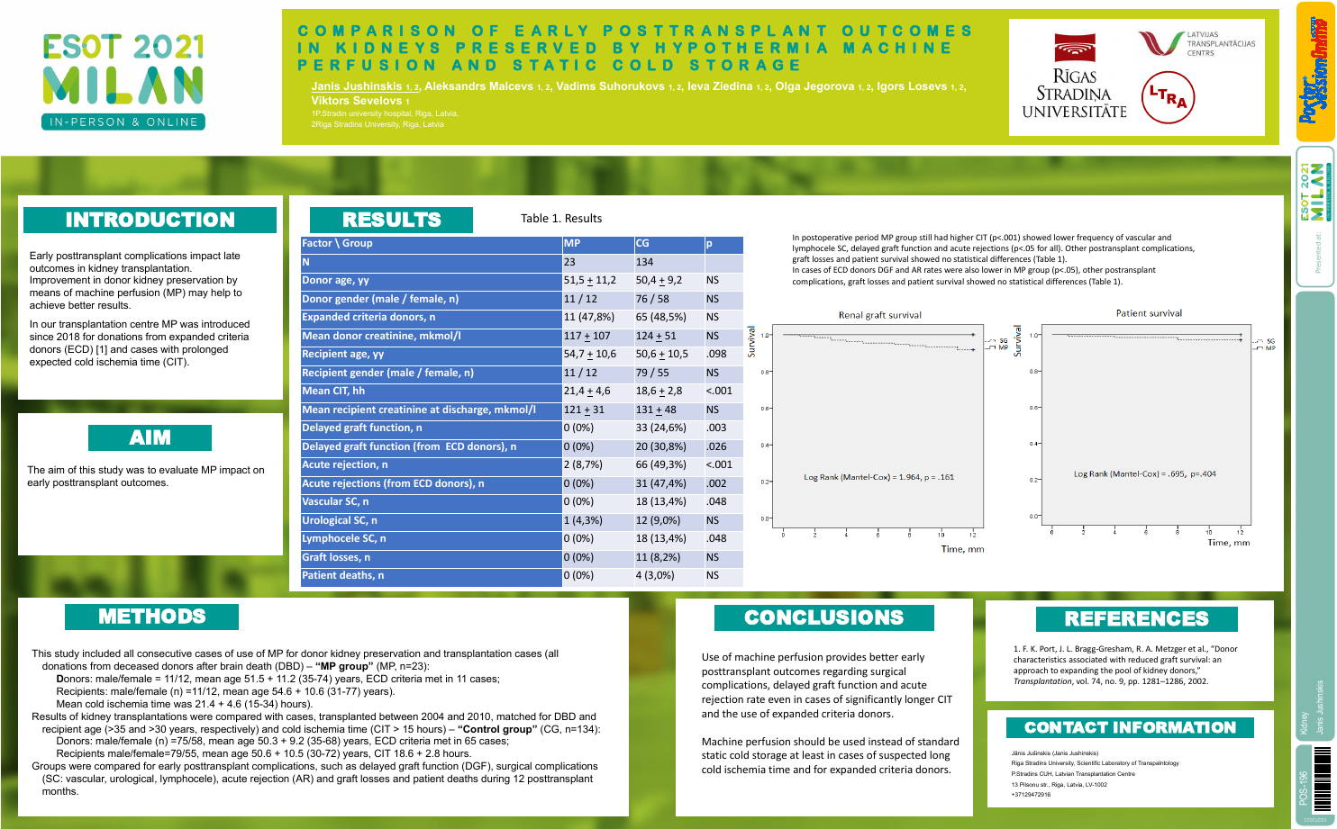 | COMPARISON OF EARLY POSTTRANSPLANT OUTCO.. | Janis Jushinskis .. | Aleksandrs Malcevs, Vadims Suh.. | Kidney.. | - - | |