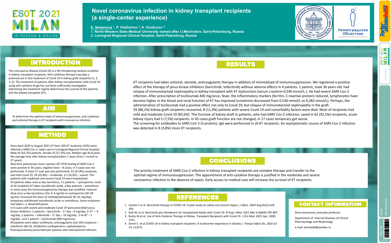 | NOVEL CORONAVIRUS INFECTION IN KIDNEY TR.. | Elena Semenova .. | .. | Kidney.. | - - | |