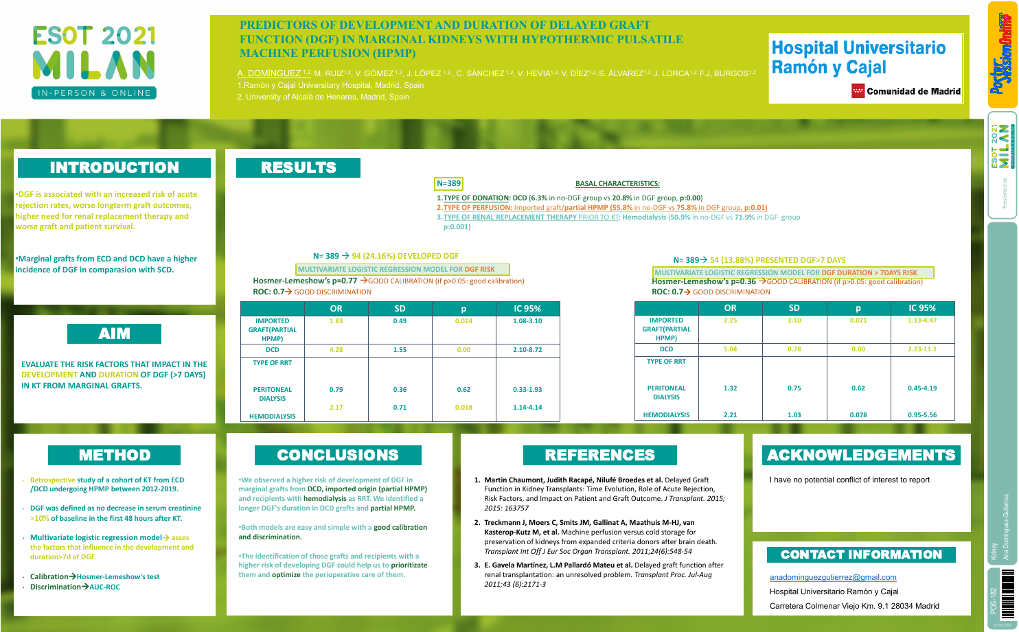 | PREDICTORS OF DEVELOPMENT AND DURATION O.. | Ana Dominguez-Gutierrez .. | ANA DOMINGUEZ-GUTIERREZ; MERCE.. | Kidney.. | - - | |