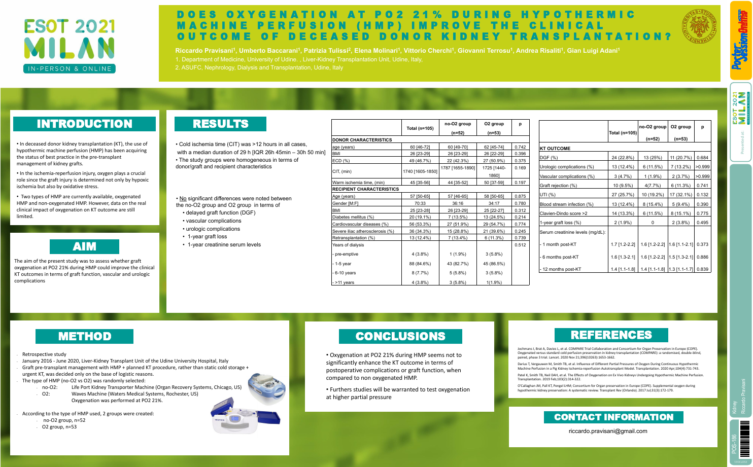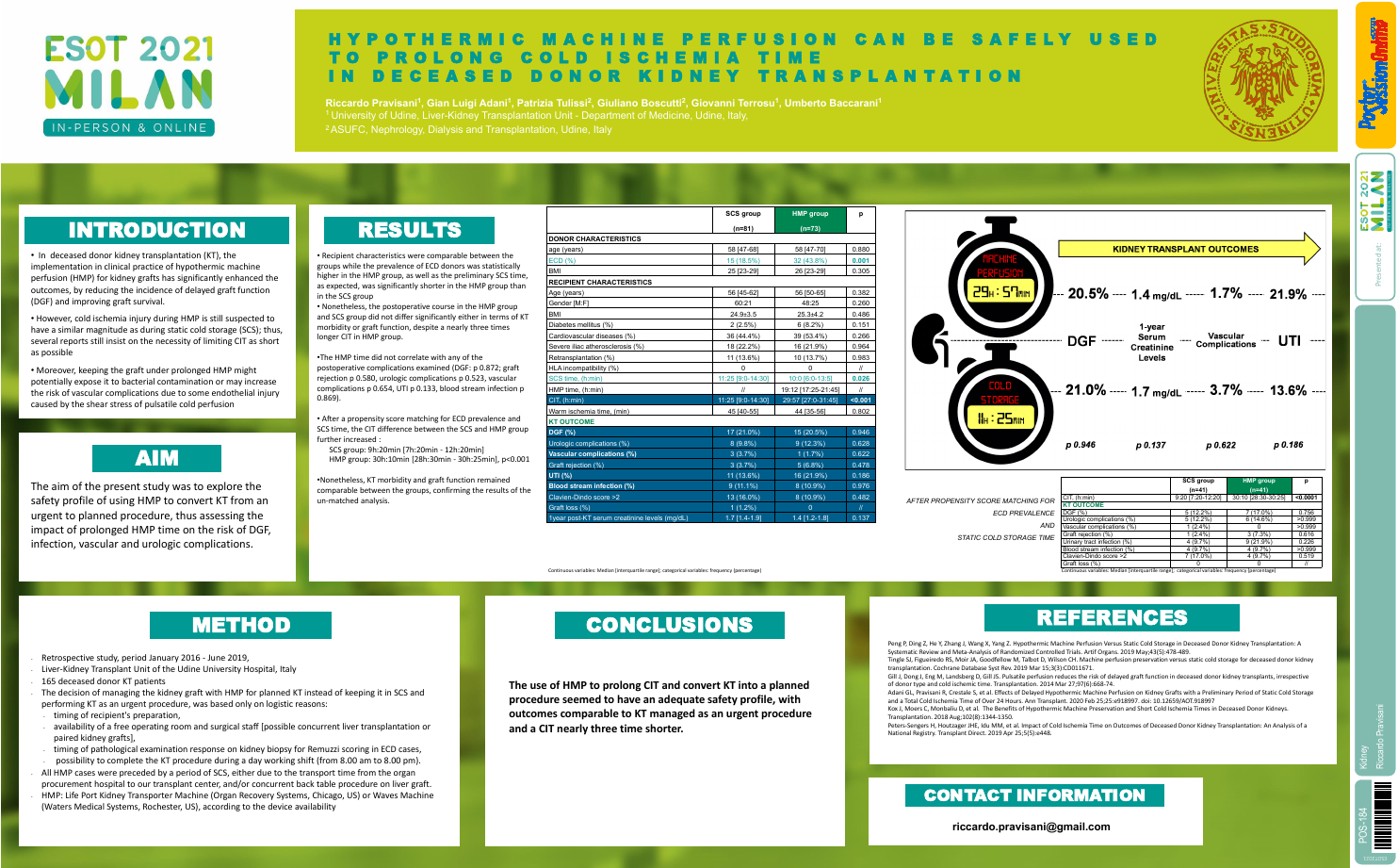 | HYPOTHERMIC MACHINE PERFUSION CAN BE SAF.. | Riccardo Pravisani .. | .. | Kidney.. | - - | |