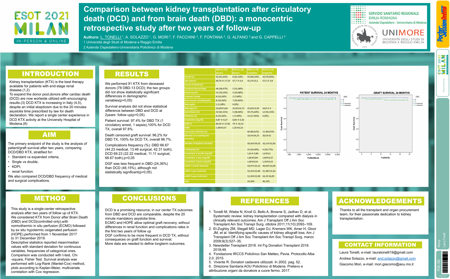 | COMPARISON BETWEEN KIDNEY TRANSPLANTATIO.. | Laura Tonelli .. | Andrea Solazzo, Giacomo Mori.. | Kidney.. | - - | |