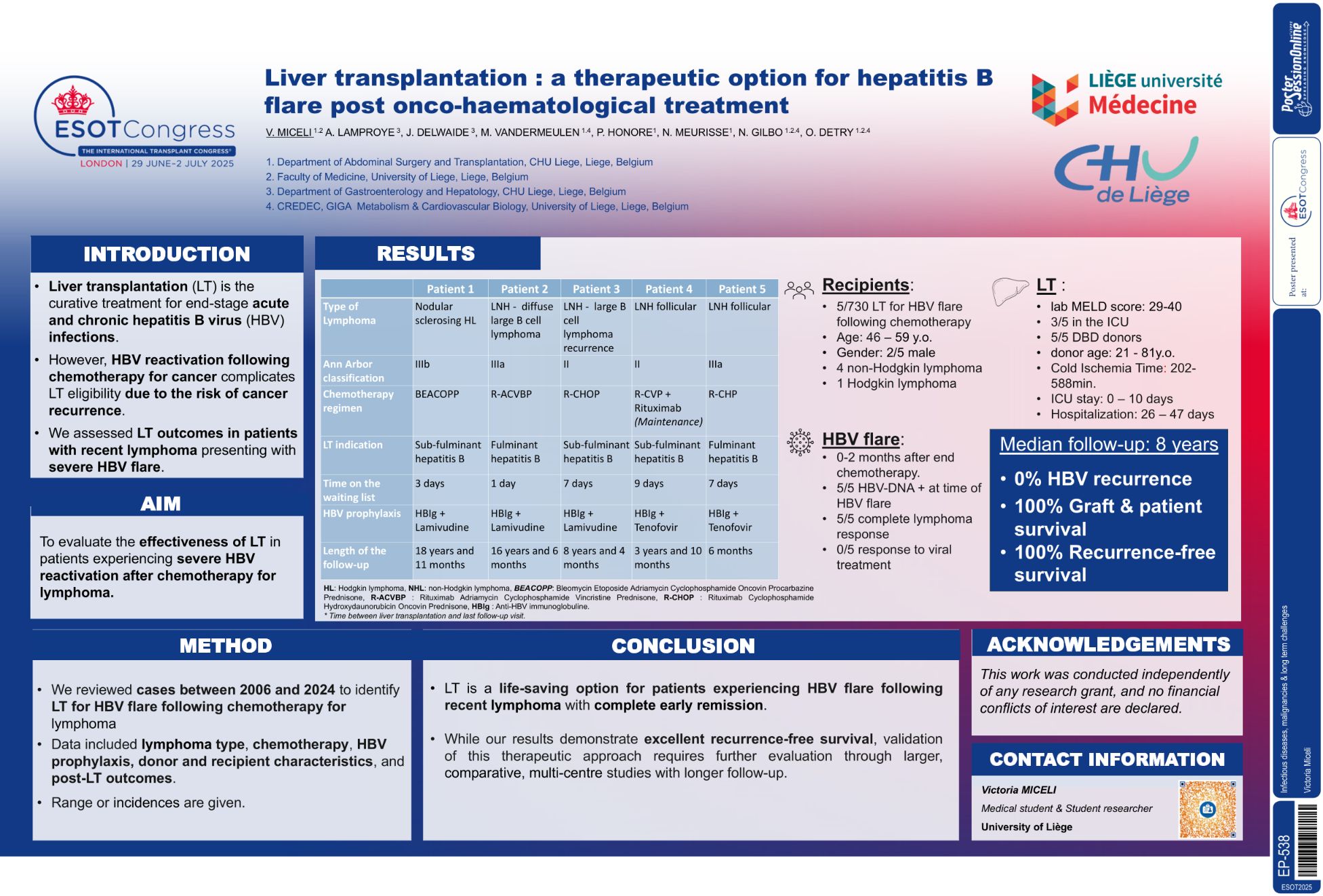 | Liver transplantation : a therapeutic op.. | Victoria Miceli .. | Olivier DETRY (olivier.detry@c.. | Infectious diseases, malignancies & long.. | - - | |