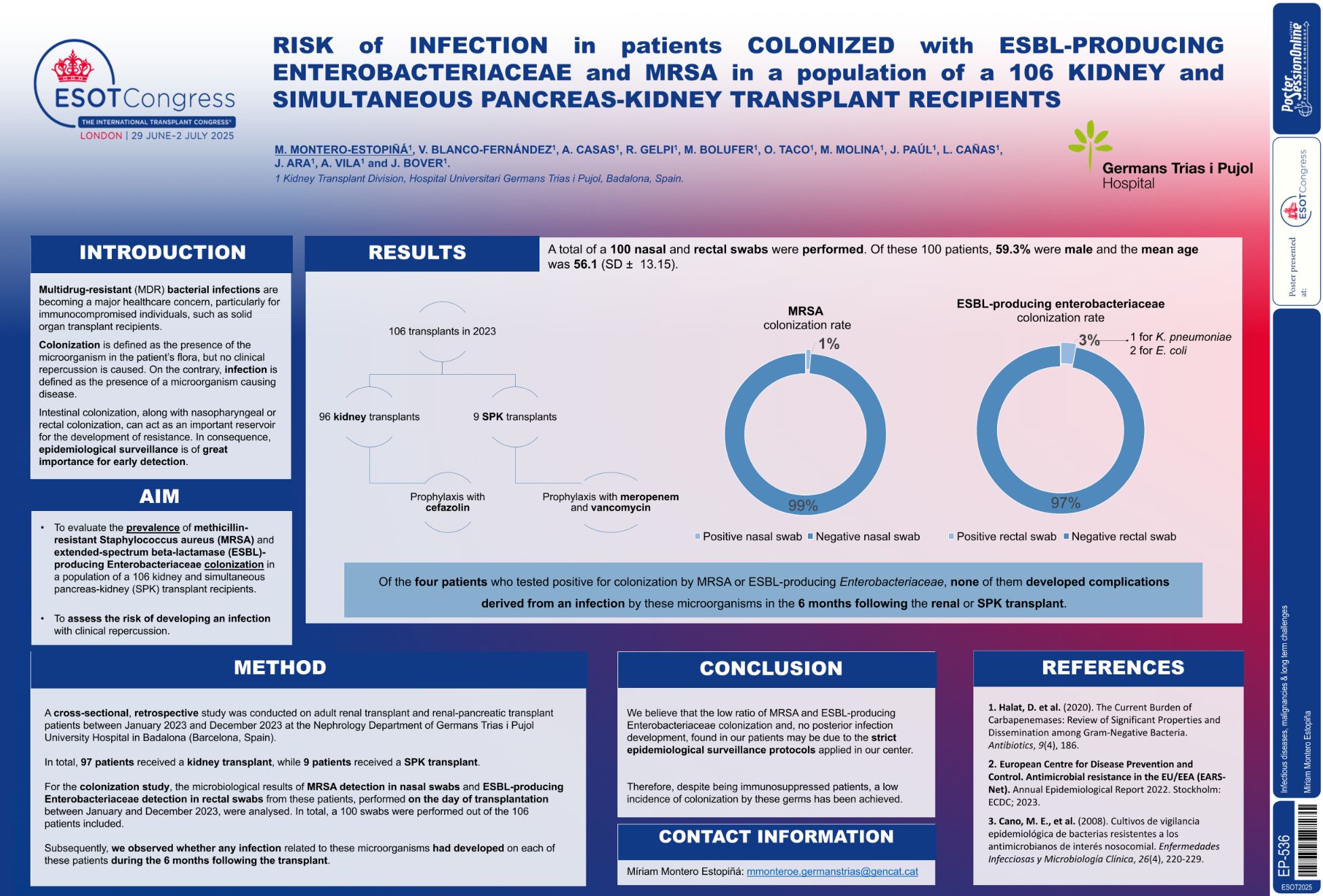 | RISK of INFECTION in patients COLONIZED .. | Miriam Montero Estopiña .. | .. | Infectious diseases, malignancies & long.. | - - | |