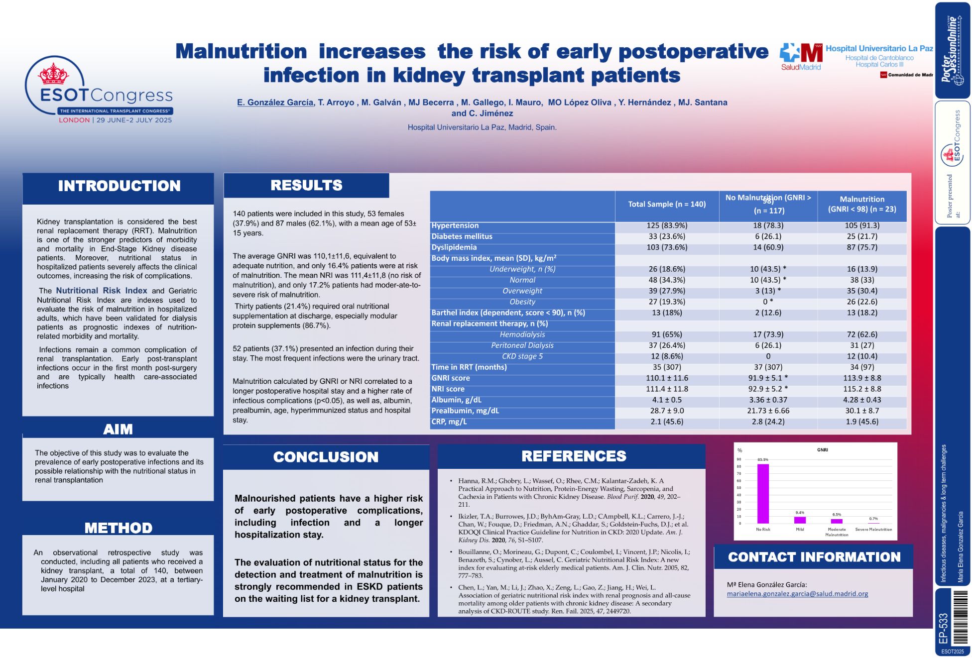 | Nutritional status influence over early .. | Maria Elena Gonzalez Garcia .. | E. González García, T. Arroyo .. | Infectious diseases, malignancies & long.. | - - | |