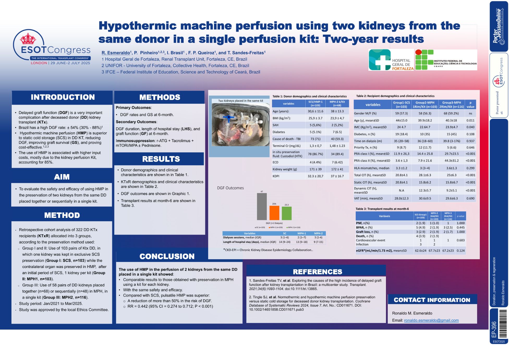 | Machine kidney preservation by placing t.. | Ronaldo Esmeraldo .. | R. Esmeraldo, P . Pinheiro, I... | Donation, preservation & regeneration.. | - - | |