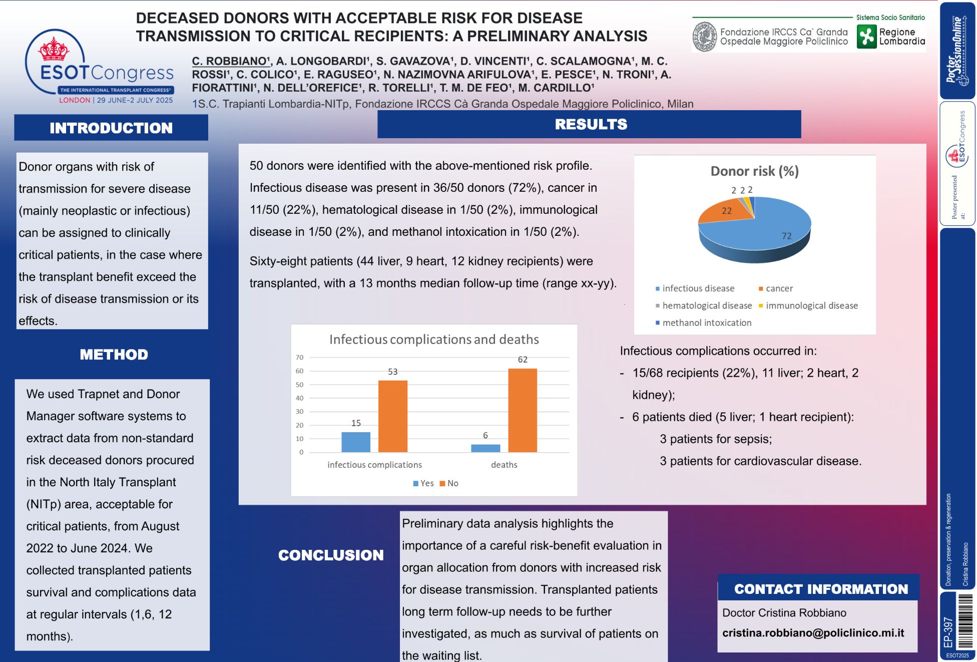 | Donors with acceptable risk for patients.. | Cristina Robbiano .. | .. | Donation, preservation & regeneration.. | - - | |