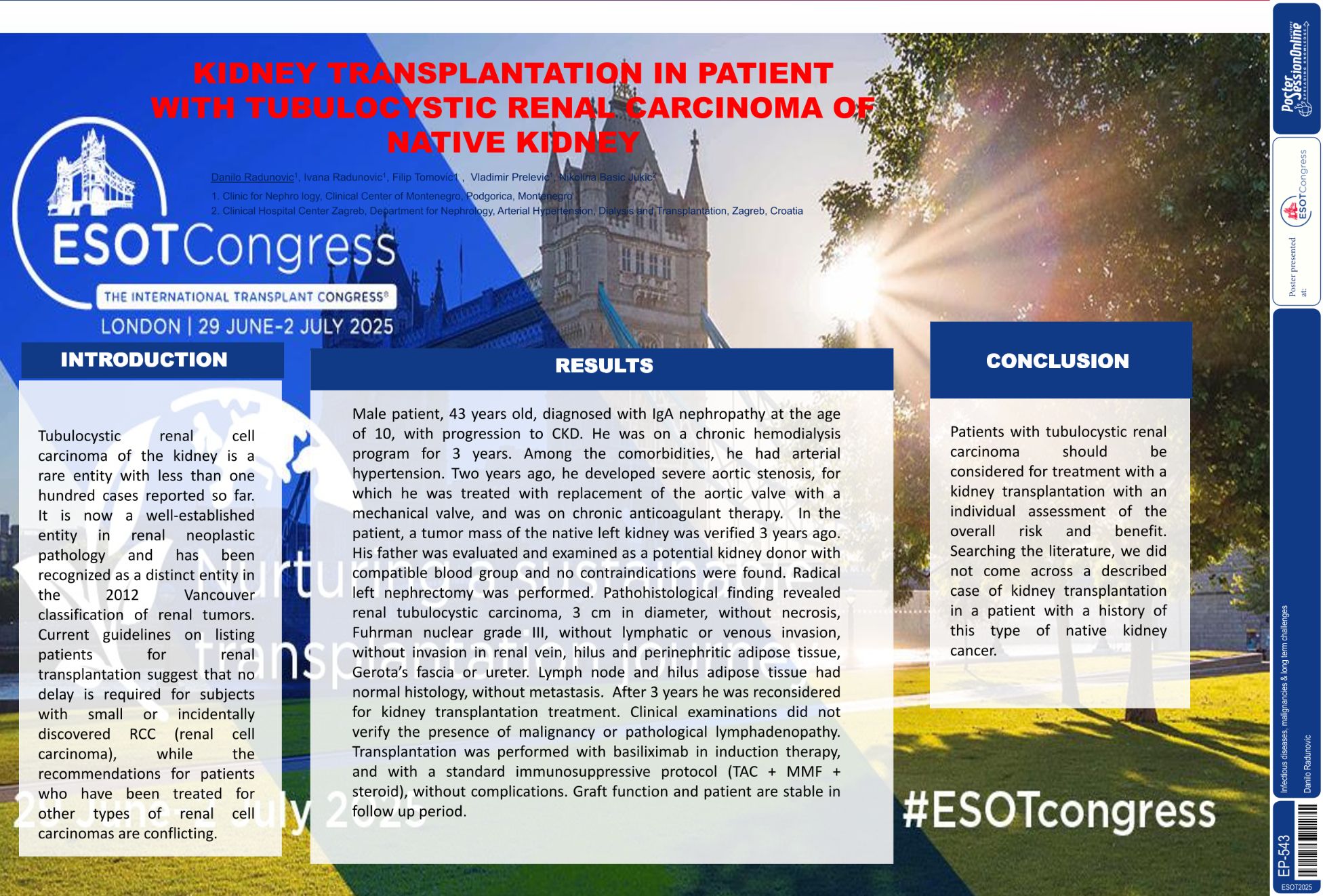 | KIDNEY TRANSPLANTATION IN PATIENT WITH T.. | Danilo Radunovic .. | .. | Infectious diseases, malignancies & long.. | - - | |