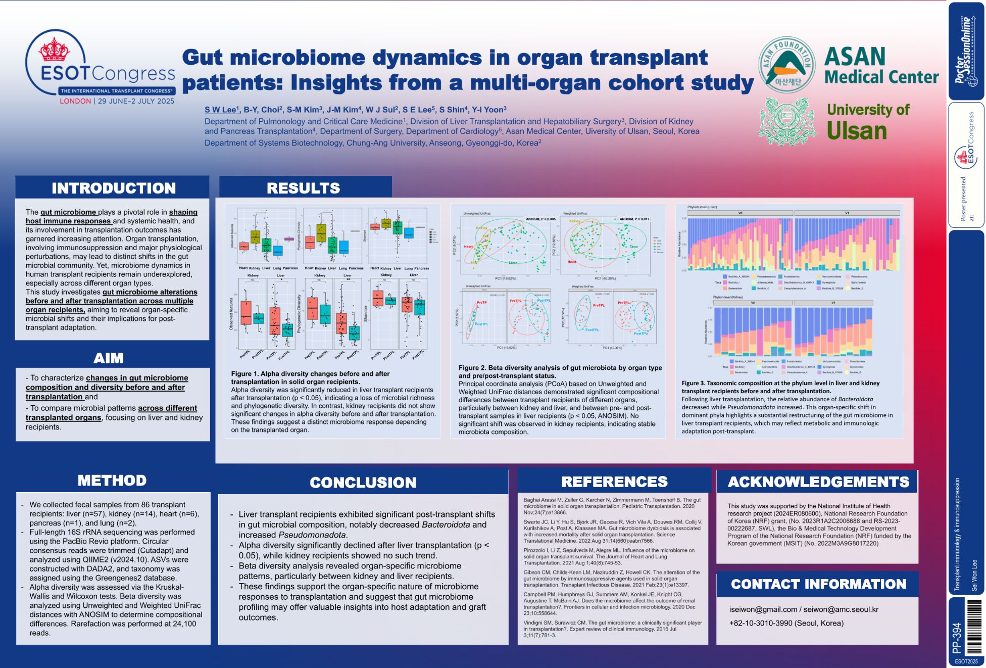 | Gut microbiome dynamics in organ transpl.. | Sei Won Lee .. | .. | Transplant immunology & immunosuppressio.. | - - | |
