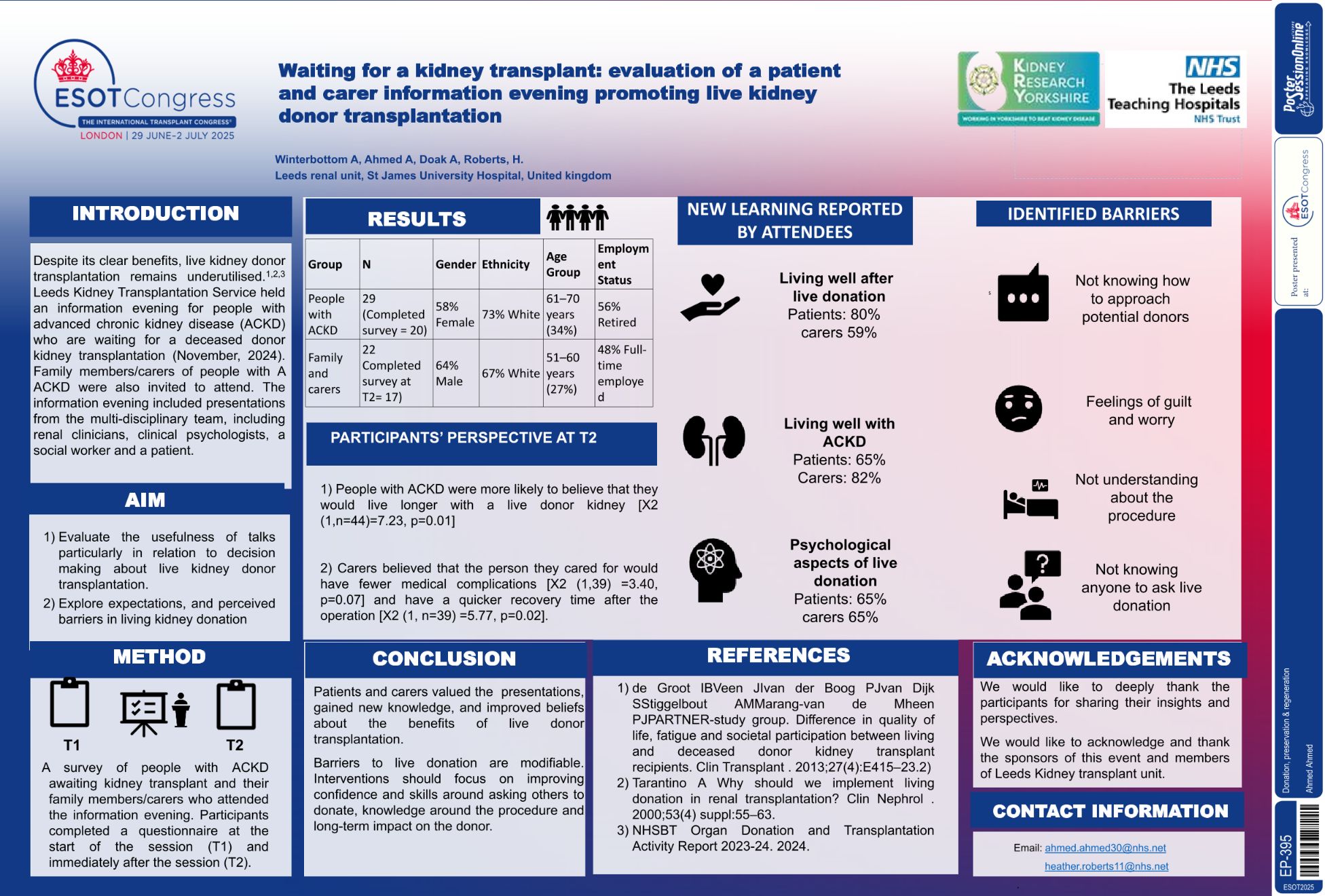 | Evaluation of a patient and carer inform.. | Ahmed Ahmed .. | Dr Anna WinterbottomDr Ailsa D.. | Donation, preservation & regeneration.. | - - | |